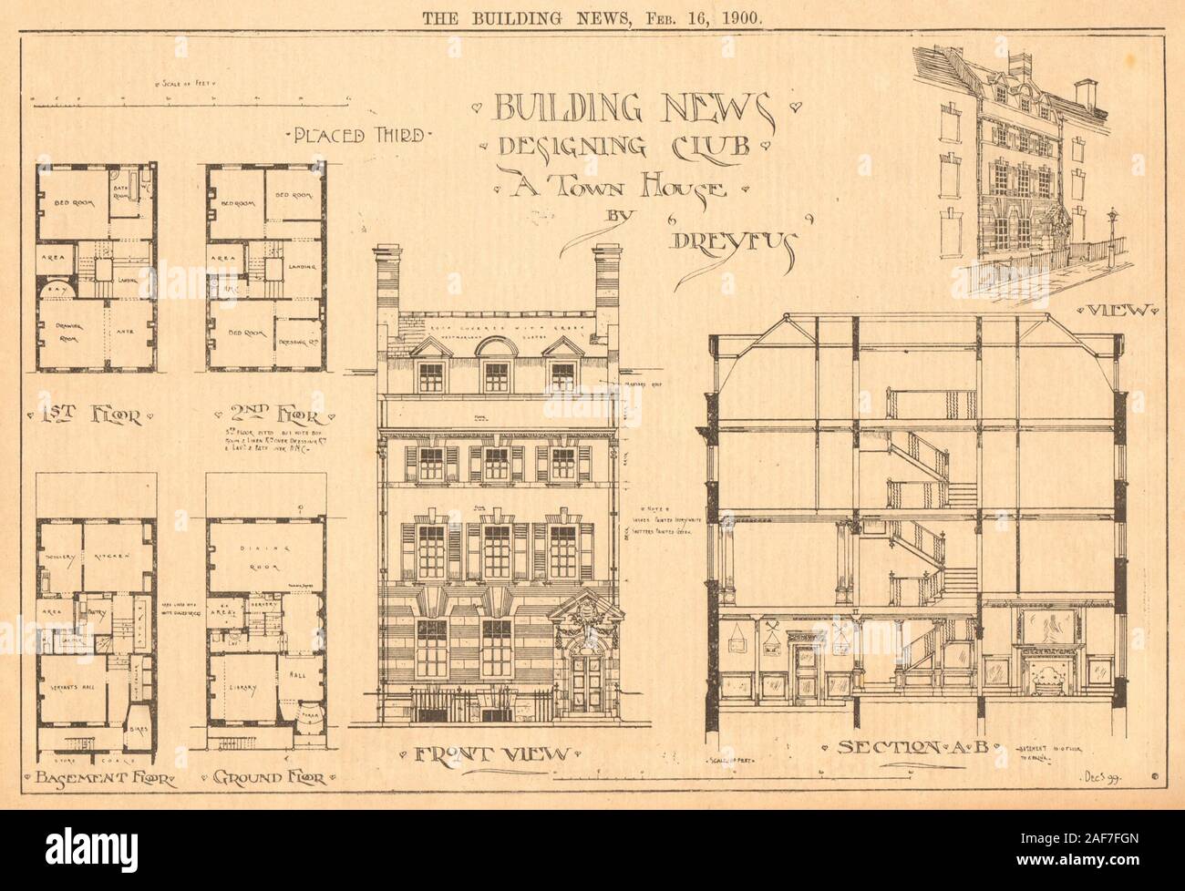 A Small Town House By Dreyfus Basement Plan Front View 1900 Old