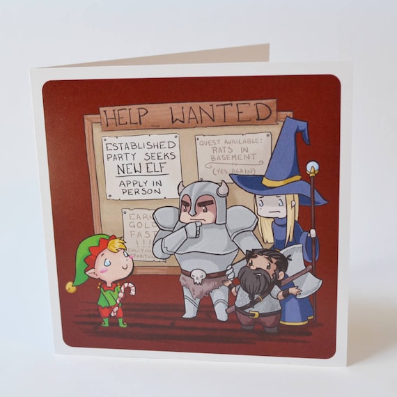 Geeky Holiday Card Elf Wanted Design Cute And Nerdy Dungeons Etsy